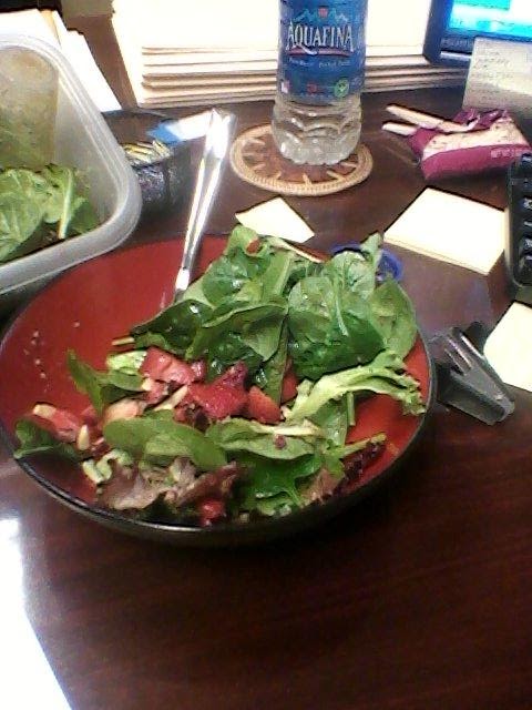 Today I tried to mimic my friend Kelli's DELICIOSO spinach/strawberry salad without actually having to have any culinary skills and I'll say I did pretty alright.